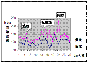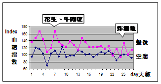 ³o¦ì¿}¤Í¦¤W¤j³£³Ü¤û¥¤¡BªGµæ¥Ä¡B¯N»æ¡B¦×ÃP¡B»¶ÅÚ½³°®µ¥¡F¤¤¤È¦³®É¦Yªø«C¯À¹À\¡A¦³®É¥[¨Ç³½¦×µ¥¸§¹¡C§Ú̥ѿ¯¹°O¿ýªí»P¦å¿}«ü¼Æªí¹Ï(¥|)µo²{¡G¦pªG«e¤@¤Ñ¥L°µ¨Çµæ¶é¤u§@¡A«h²Ä¤G¤Ñªº«ü¼Æ©úÅã¤U°¡F¦Ó¦pªG«e±ß¦Y¨ì¬µÂû¶ô¡Bªá¥Í¡B¦×°®µ¥¡A«h²Ä¤G¤Ñªº«ü¼Æ´N·|°¾°ª¡Cì«h¤W¡A¹ÏªíùتŸ¡¦å¿}ªº¦±½u¦b100¤W¤Uªi°Ê¡A¦Ó¥B¦b«á´Áªºªi°Ê´T«×´î¤p¡Aªí¥Ü¦å¿}º¥ÁÍéw¡C